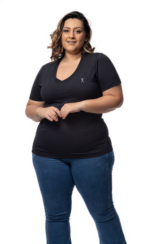 Camiseta Feminina Decote V Plus Size