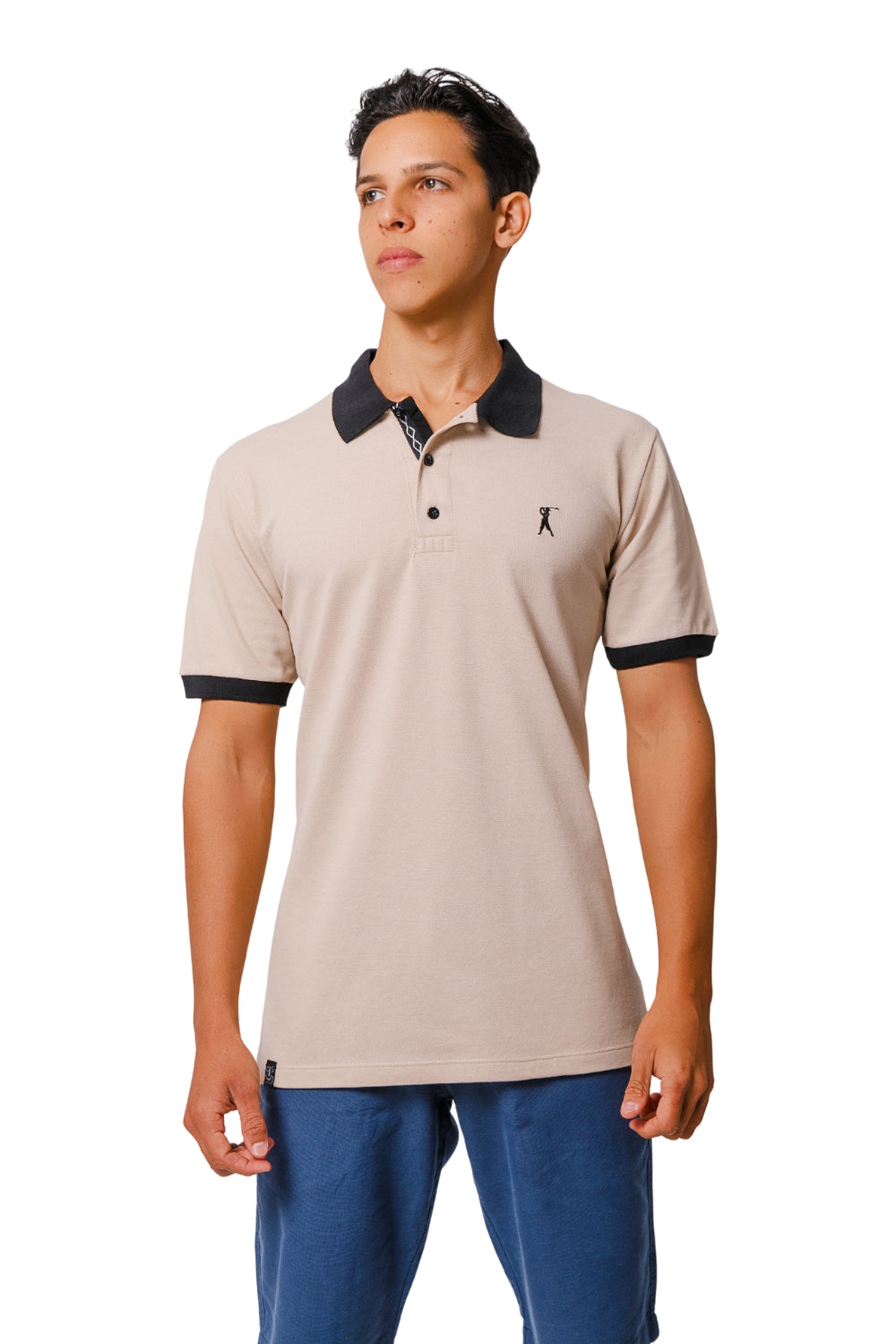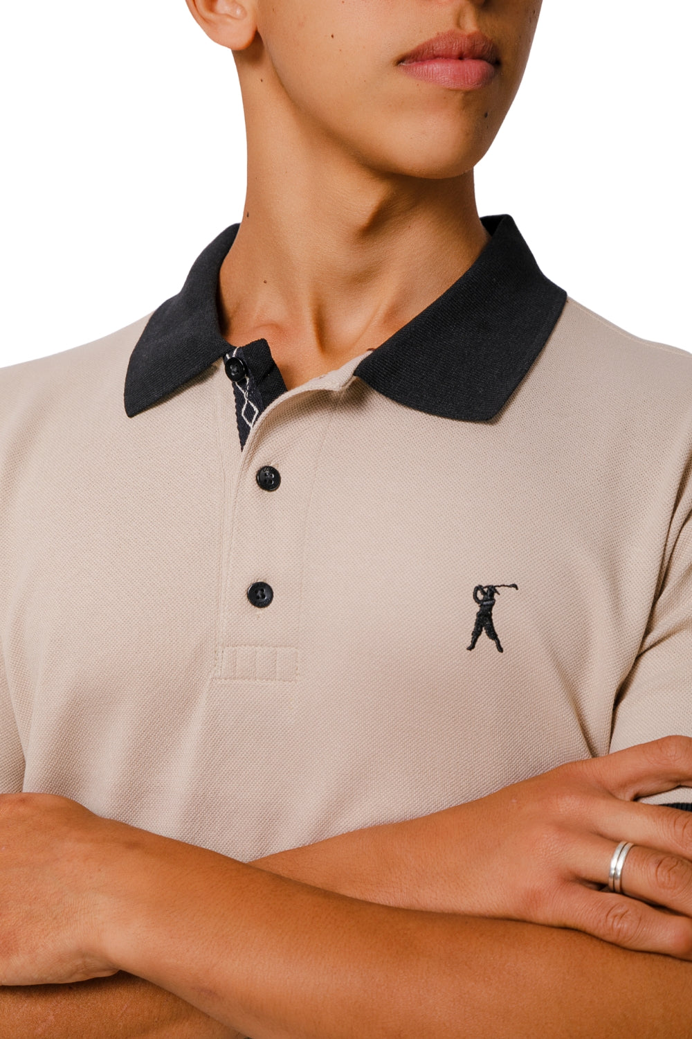 Produzida em tecido piquet PA (50% algodão / 50% poliéster), oferece respirabilidade e resistência, perfeita para o dia a dia. O contraste refinado da gola e punhos pretos adiciona personalidade, enquanto o detalhe interno com cadarço preto e bordado zigzag branco dá um toque exclusivo e moderno.