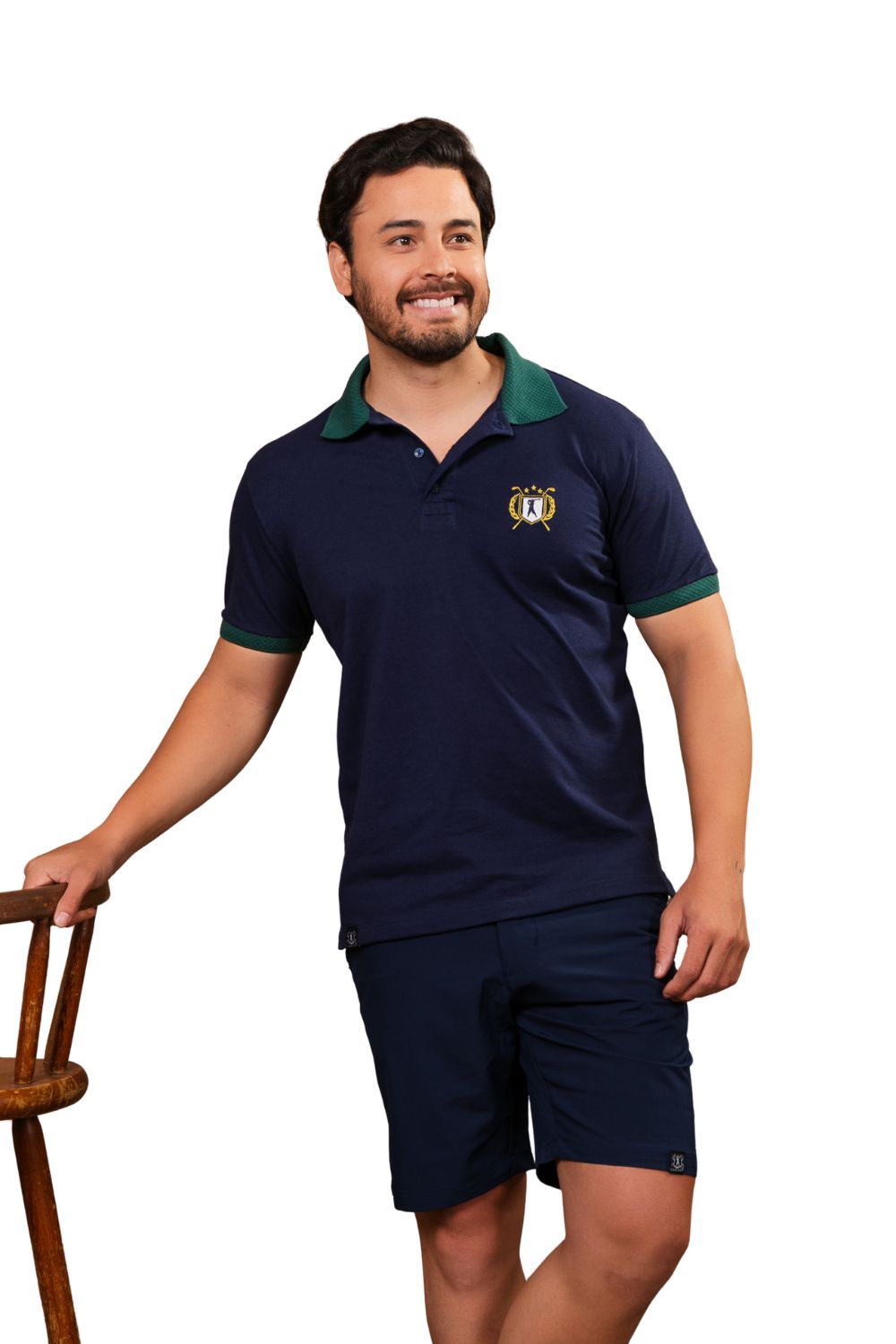 - Detalhes: Gola e punho texturizados em retilinea, brasão exclusivo aplicado, modelagem confortável com caimento clássico.